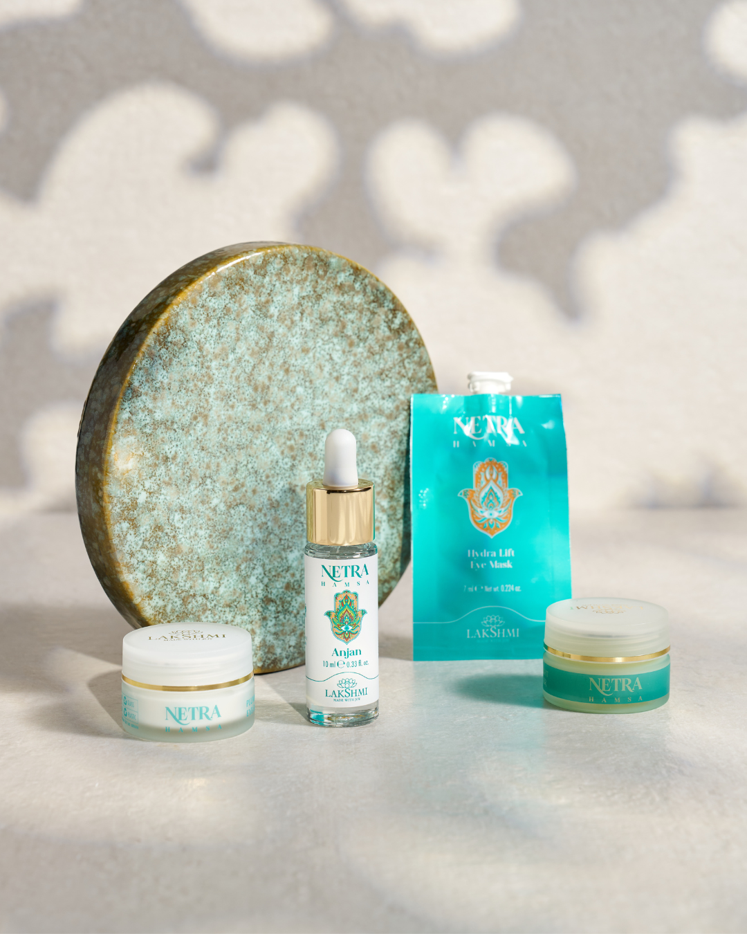 Oui, elle complète tous les rituels visage Lakshmi. Utilisez Netra en association avec votre gamme principale (PITTA, VATA, ANTI-AGE…) pour un soin global.