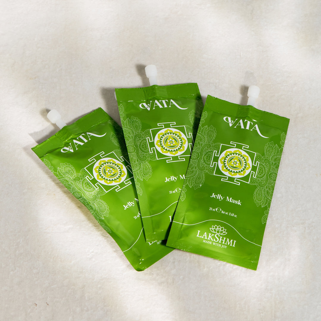 La peau VATA est généralement fine, sèche, sensible et parfois sujette aux ridules précoces. Elle demande une hydratation constante et un soin protecteur.